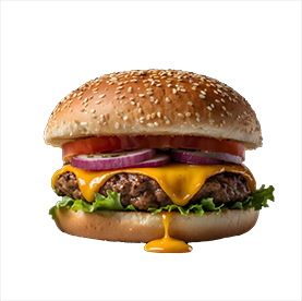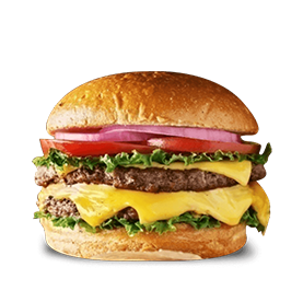 2 Steaks de boeuf smashés, cheddar, salade, oignons rouges, sauce au choix.