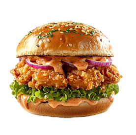 Poulet pané, cheddar, salade, tomates, oignons, sauce au choix.